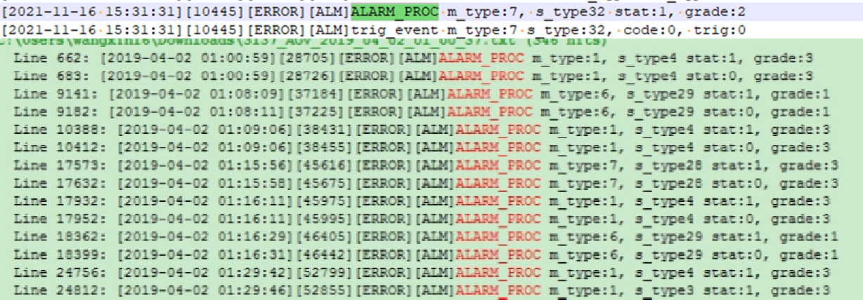 搜索关键字ALARM_PROC可获取所有告警信息,初步判断小车