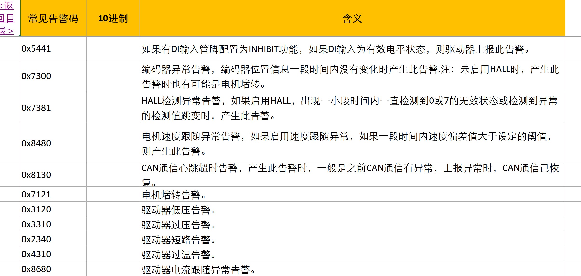 告警状态:stat,1开始,0结束,code驱动器告警代码