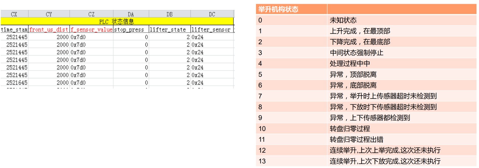 搜索lifter_state,在对应状态表中查找对应的状态,分析故障原因