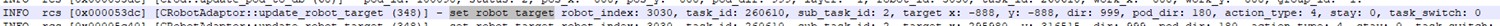 Ou是算法输出给小车的下个目标点,In是算法获取到的小车的当前点左边,当这两个值一致的时候,说 明算法未给小车输出下一个坐标点,小车会显示任务空闲,如下左图3126车;框选的ou和in输出不同, 说明3126车有任务正在执行。