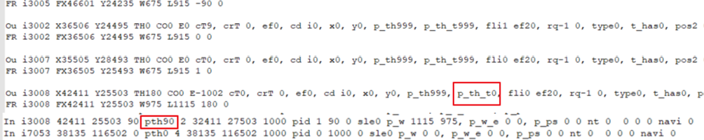 In中红框选中的o为当前机器人角度,ou中红框选中的TH90为目标角度,此时说明机器人当前点需要旋 转。
